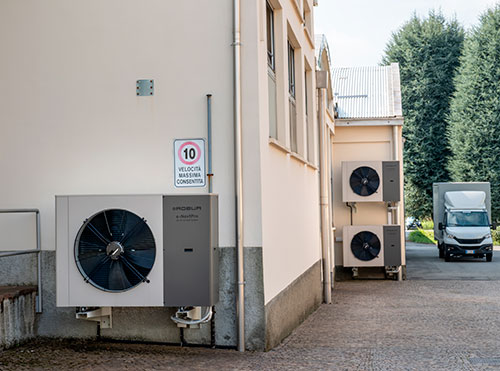 L’impianto e-NextPro ha permesso a Corti Design di abbandonare completamente il gasolio, riducendo consumi e impatto ambientale grazie all’elevato contributo di energia rinnovabile fornito dalle pompe di calore.